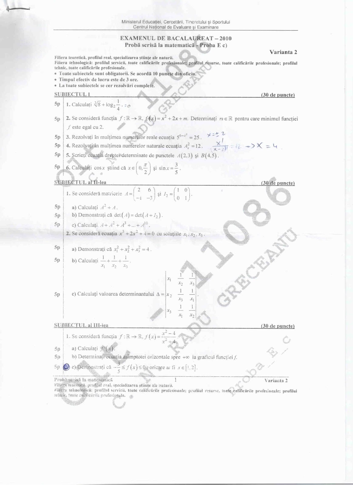 Subiecte Matematica M1 Bacalaureat 2010 - sesiunea speciala pentru olimpici (pagina 2)